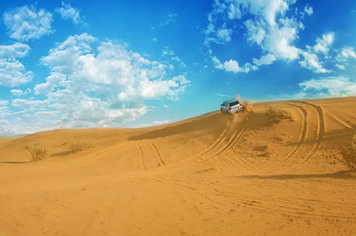 Сафари. Это увлекательное путешествие в пустыне навсегда запомнится невероятными виражами на джипе по барханам, красивым заходом солнца за Аравийские холмы, знакомством с бедуинами, катанием на верблюдах и сэндборде по песчаным дюнам.
